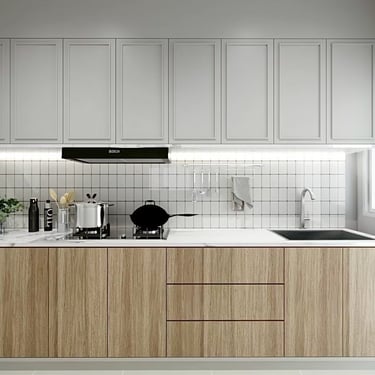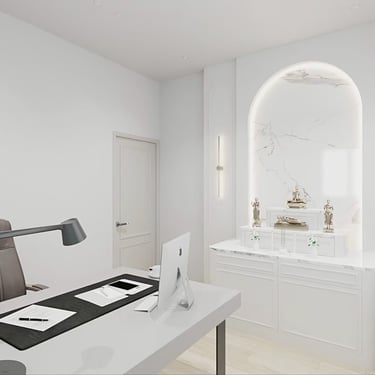 โทนสีขาวตัดทอง และลายไม้สีอ่อน